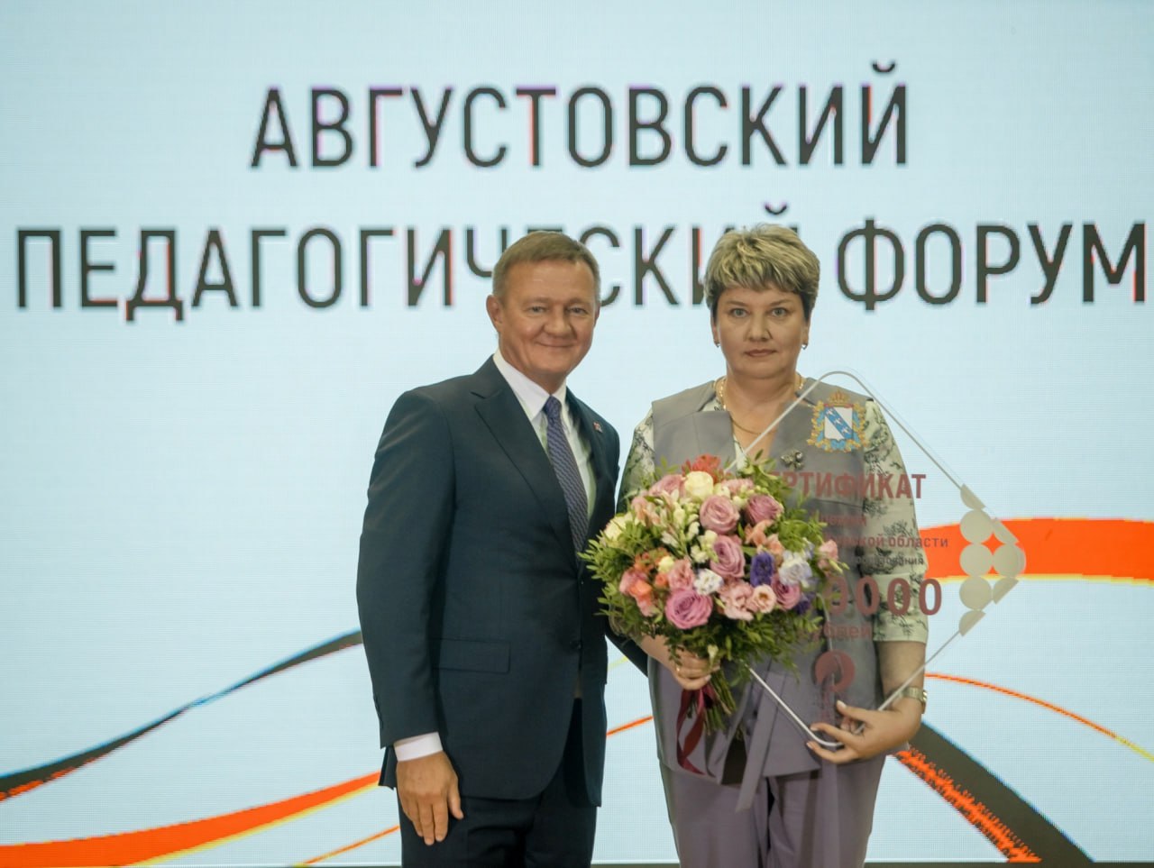 Перед совещанием Роман Старовойт вручил награды Курской области лучшим педагогам. С этого года учителям присуждается премия Губернатора. 5 педагогических коллективов получили сертификаты — каждый на один миллион рублей.