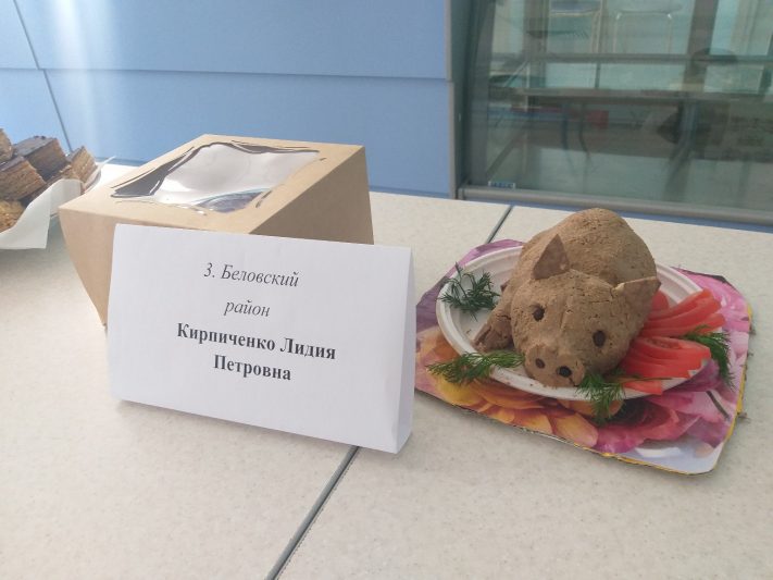 – А для кулинарной номинации я приготовила поросёнка из паштета и трубочки со сгущёнкой, – поделилась участница. – Продемонстрировала жюри и свои дизайнерские навыки: в моей экспозиции — ваза в технике декупаж, которую украшают фотографии пяти моих внучат.