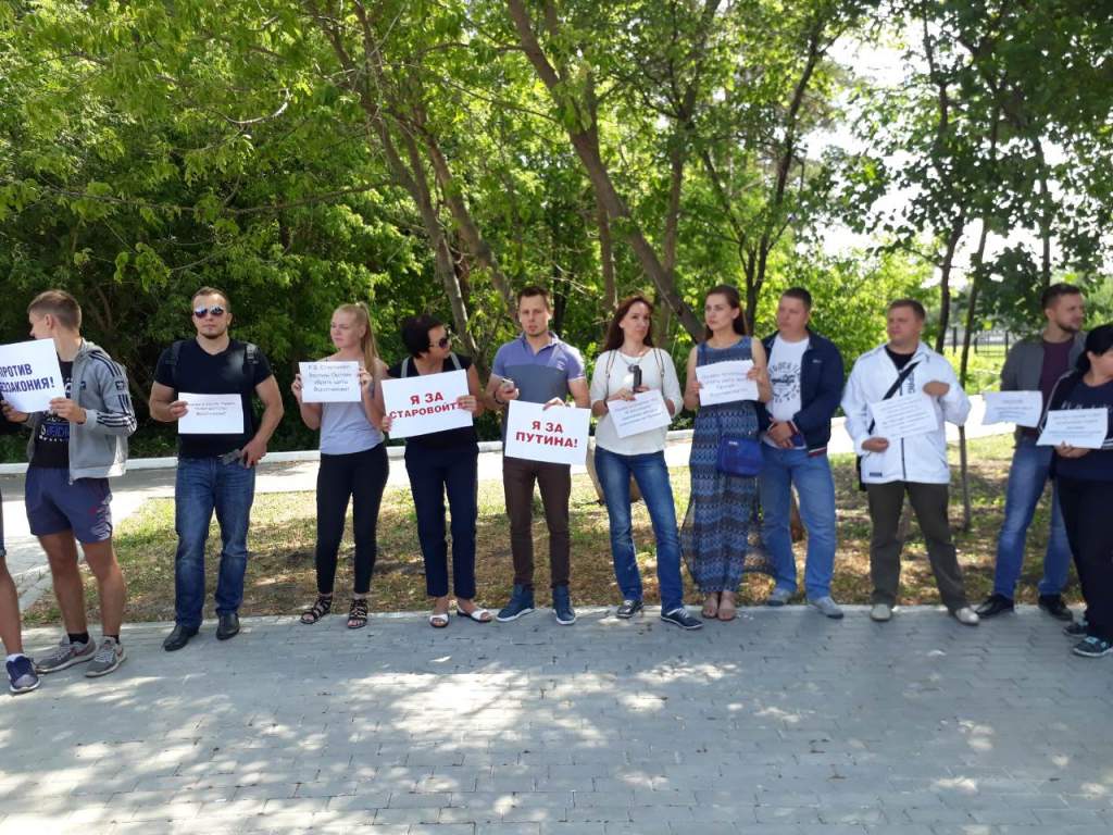 Сегодня в Курске под руководством местного предпринимателя Евгения Бухлаева прошел митинг против сноса наружной рекламы. Поддержать бизнесмена пришло около 25 человек, большая часть — молодежь. В руках у ребят находились плакаты, на одной стороне которых было написано: «Я за Путина», «Я за Старовойта», «Я за Карамышева», а на другой – «Против беззакония!»