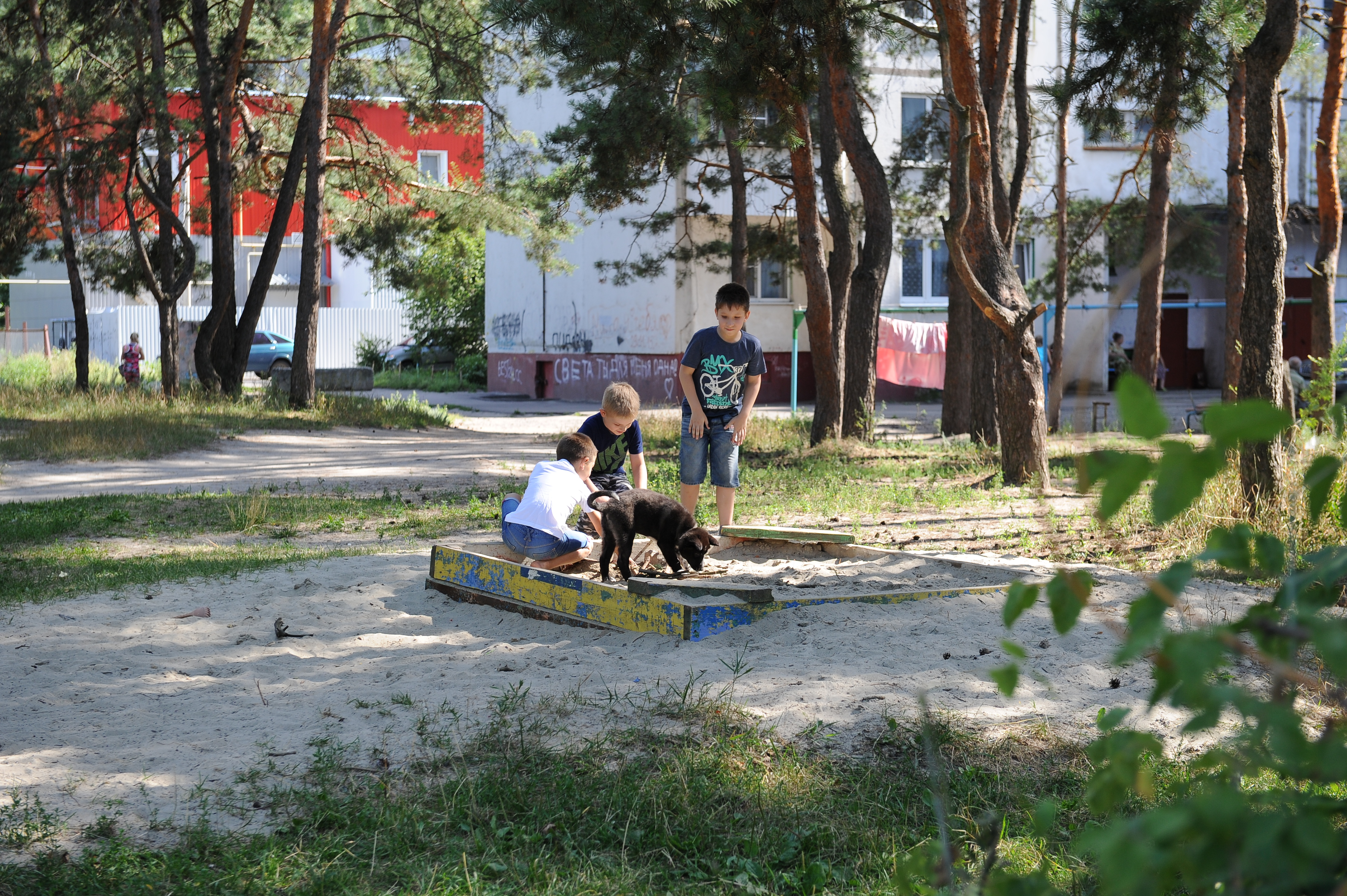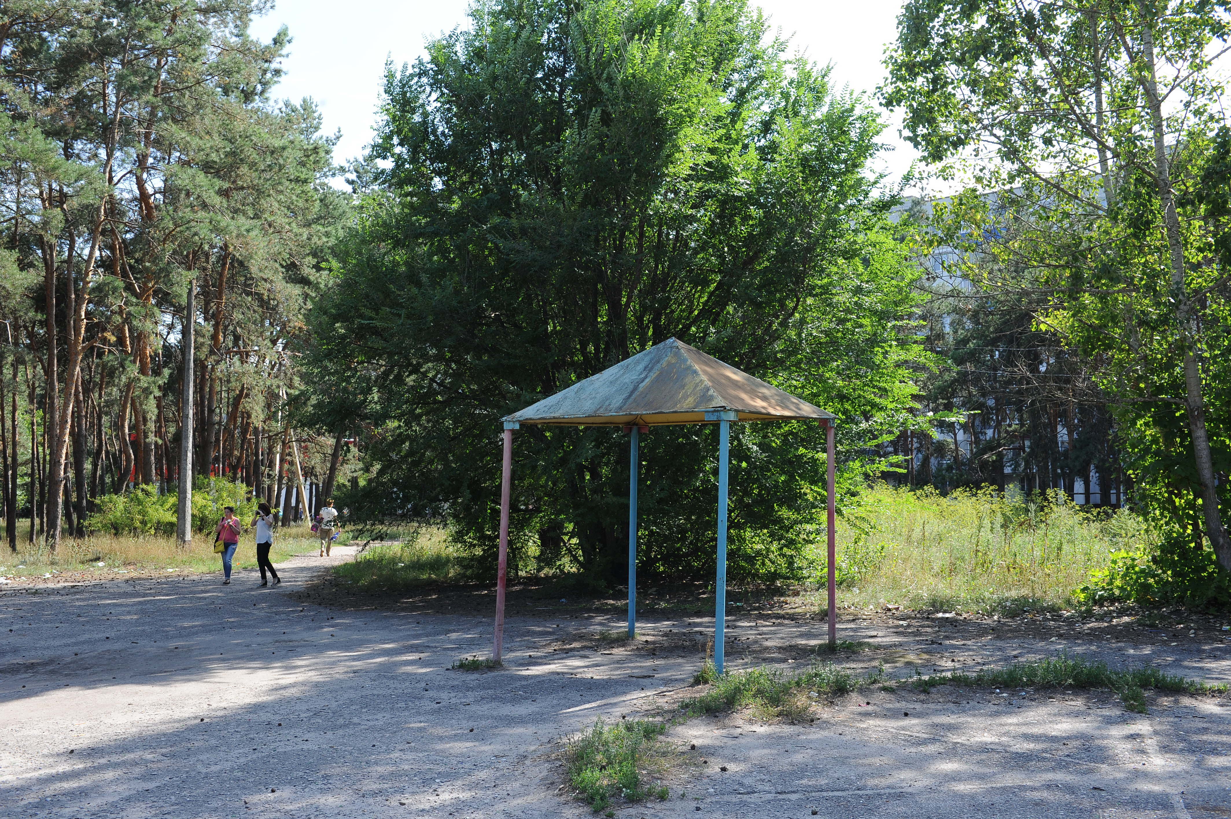 Пока под старыми соснами возле ближайшей многоэтажки есть только поломанные качели да устаревшая песочница