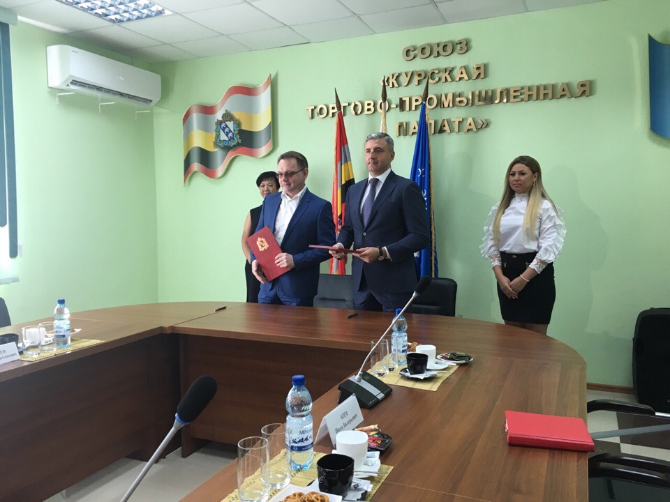 Сегодня в Торгово-промышленной палате Курской области прошла рабочая встреча заместителя губернатора Максима Бехсмельницына и генерального директора «Компании ТрансТелеКом» Романа Кравцова.