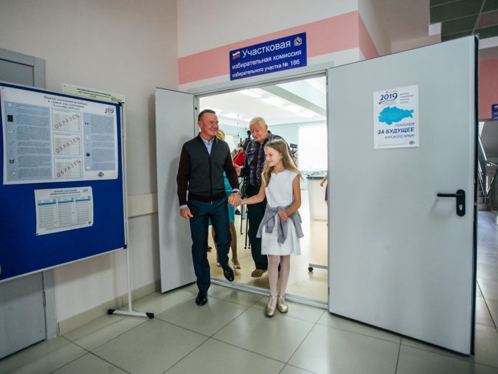 На выборы Роман Старовойт пришел с дочерью Анастасией.