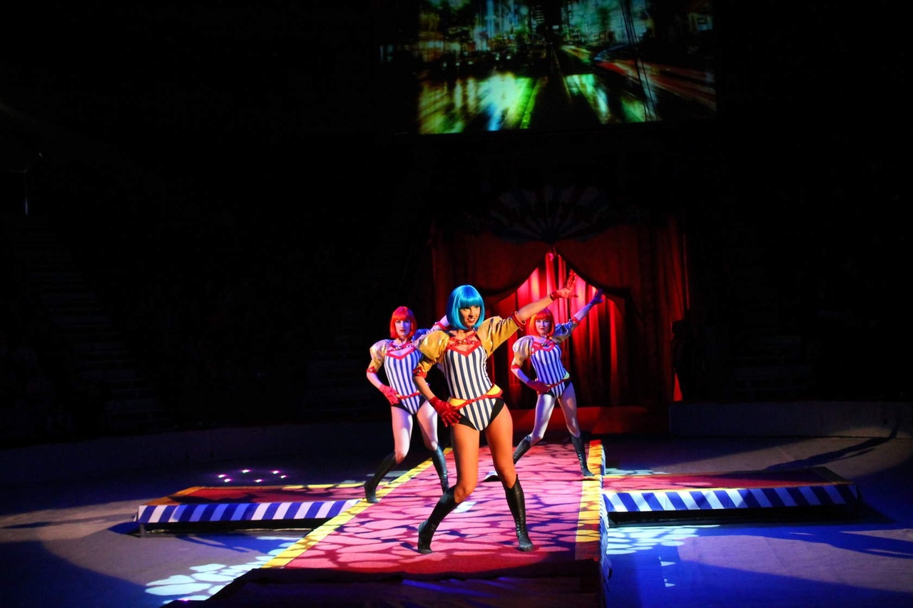 Открывает программу выступление акробатов — ансамбля «Форсаж». Юных зрителей покорили дрессированные животные — кошки. Удивительно, на что способны привычные всем домашние животные! Кстати, дрессировщики говорят, что эти пушистые создания поддаются дрессировке труднее других своих четвероногих собратьев по манежу.