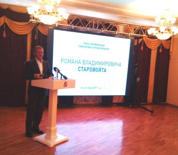 На территории мужского монастыря в Коренной пустыни Золотухинского района началась пресс-конференция губернатора Курской области Романа Старовойта.