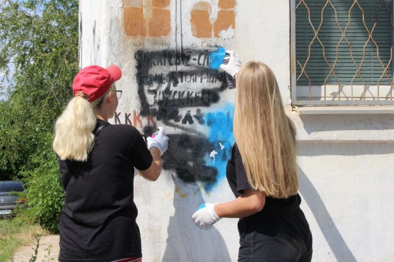 Участники рейда «зачищали» от опасных надписей СевероЗападный микрорайон и центральную часть Курска.