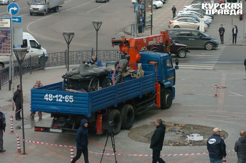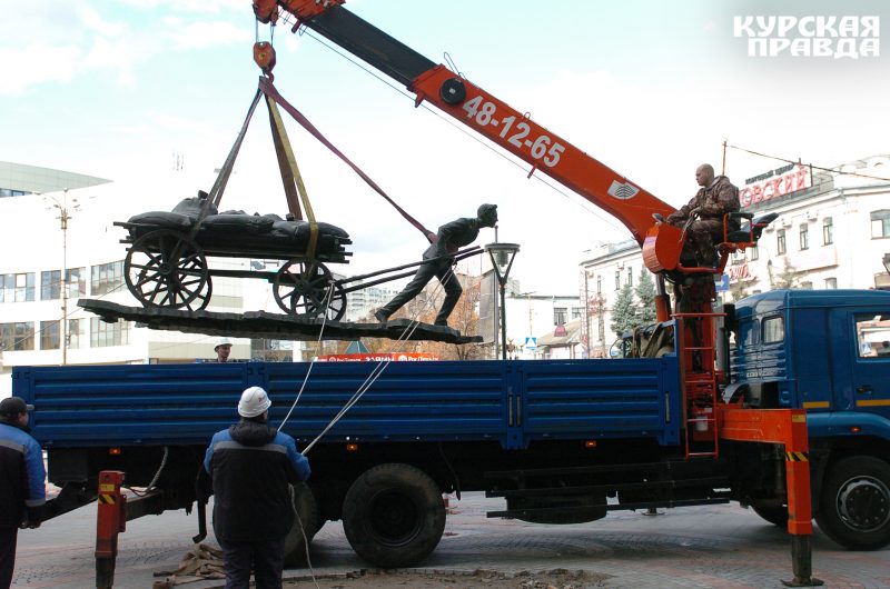 В 13:00 скульптурная композиция была погружена на транспорт и отправилась в город Орёл, где она займет место на территории туристического многофункционального комплекса «ГриНН».