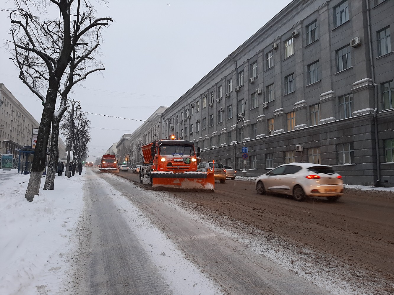 В уборке снега задействовано 57 единиц техники, в том числе них 36 комбинированных дорожных машин и 17 погрузчиков. Работы начались еще ночью, чтобы к утру убрать снег с проезжей части и обработать песко-соляной смесью основные дороги Курска.