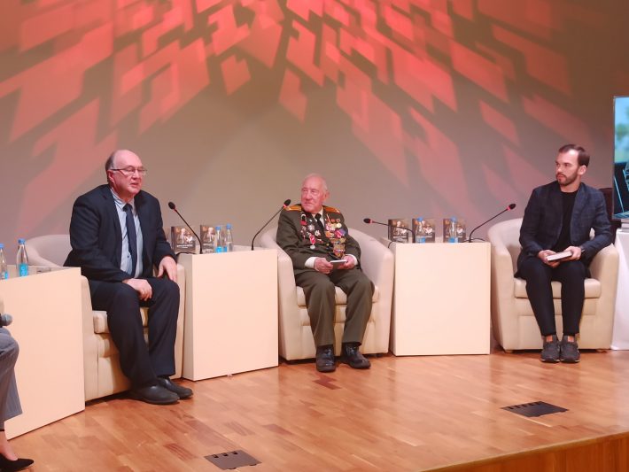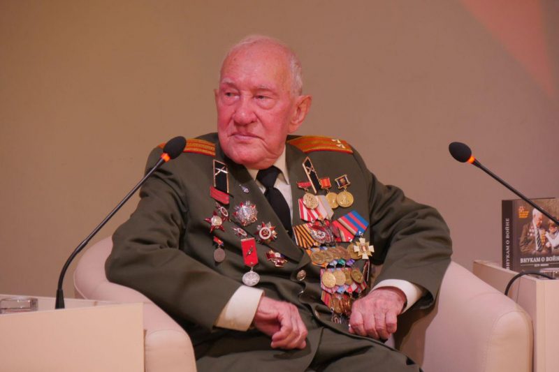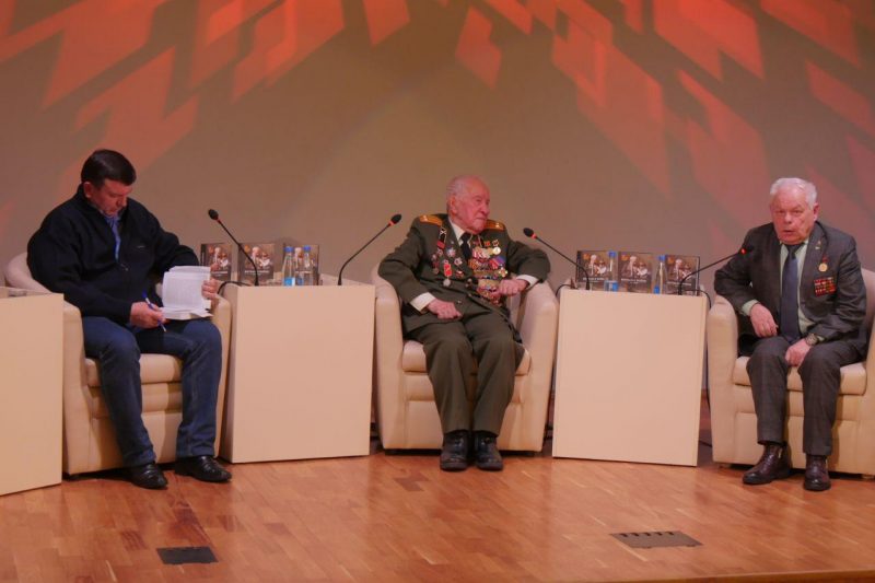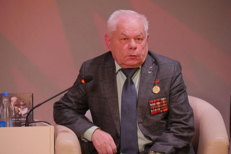 На презентацию пришли родные Петра Алексеевича — сын Виктор Петрович и внук Павел. Именно Павел стал героем снимка на обложке книги «Внукам о войне».