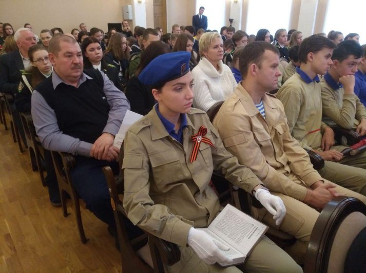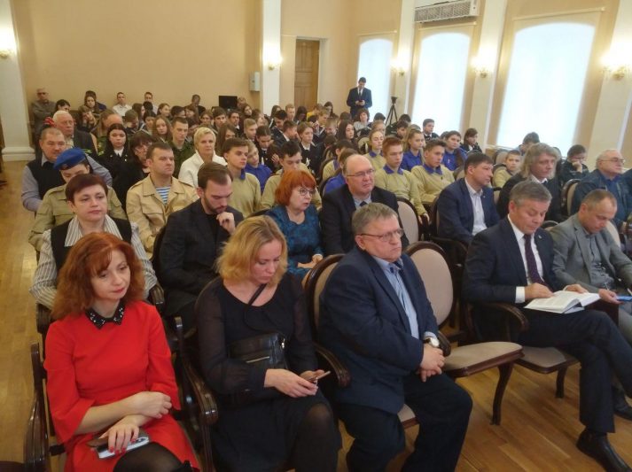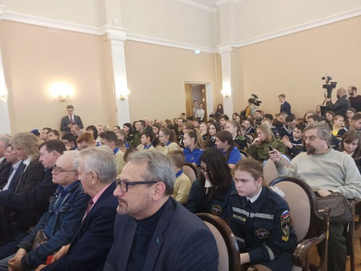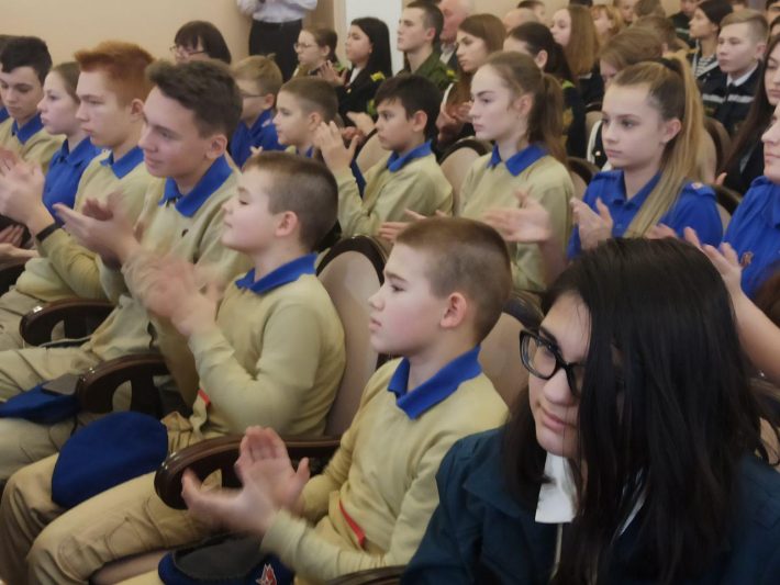 Большая часть участников встречи — школьники. Кстати, присутствовал и юнармейский отряд школы №61, который носит имя Петра Михина.