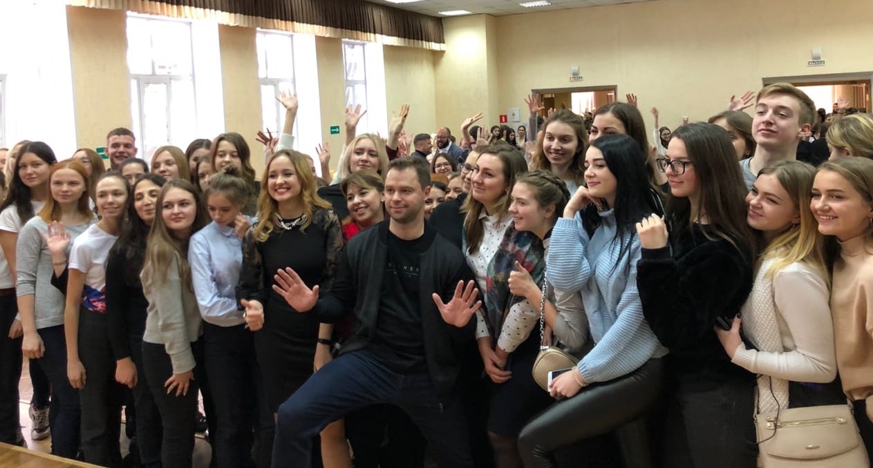 В тот же день с участием Виталия Гогунского в Курском педагогическом колледже прошел «Диалог на равных». Виталий рассказал молодым людям о том, как получил роль Кузи в сериале «Универ» и как относится к ней сейчас.