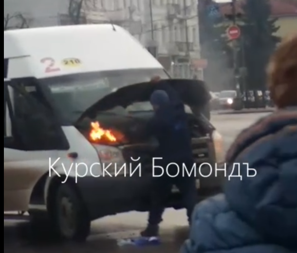 9 декабря вечером в центре Курска на площади Перекальского загорелась маршрутка.
