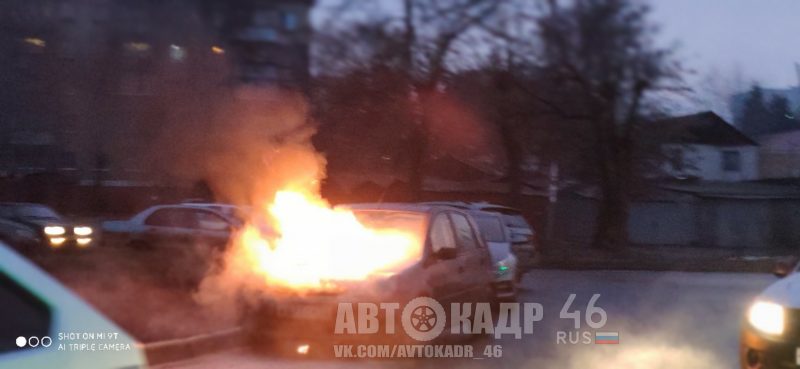 Об инциденте сообщили пользователи в сообществе «АВТОКАДР_46». На снимках видно, что загоревшаяся машина буквально полыхает.