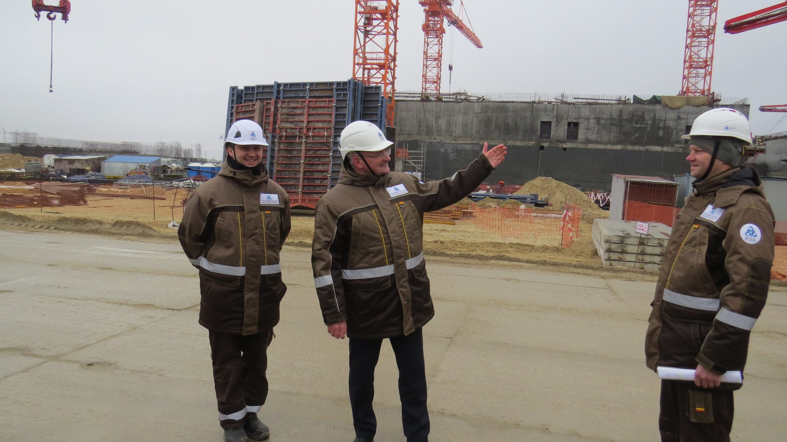 В первую очередь они побывали на строительстве насосной станции подпитки, которая находится вне контура основной стройки – на берегу Сейма. Резервуар-накопитель, откуда будет поступать вода для охлаждения реактора, расположен ниже уровня реки на 11 метров. Весной в него будут сбрасываться паводковые воды, что предотвратит выход Сейма из берегов.