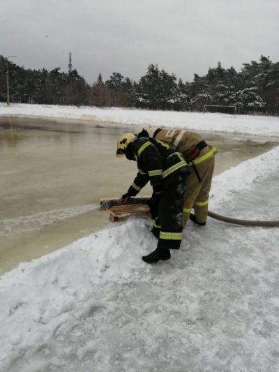 Залить каток помогли сотрудники Противопожарной службы Курской области. На расчищенное от снега футбольное поле огнеборцы части №20 пригнали пожарную автоцистерну и при помощи пожарных рукавов залили ледовую площадку размером 30х30 метров.