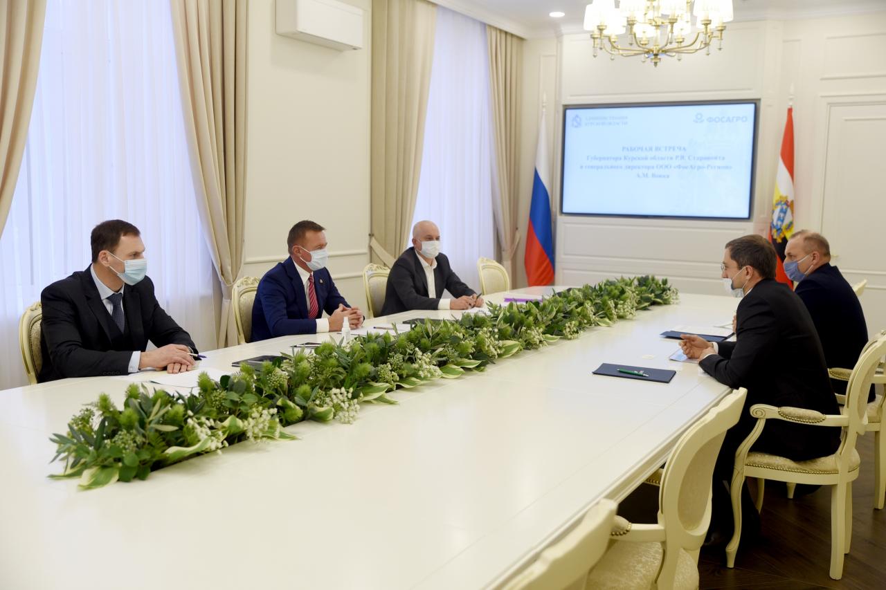 Губернатор Курской области Роман Старовойт обсудил с генеральным директором сети дистрибуции минеральных удобрений «ФосАгро-Регион» (Группа «ФосАгро») Андреем Вовком вопросы обеспечения аграриев региона минеральными удобрениями к весенней посевной кампании.