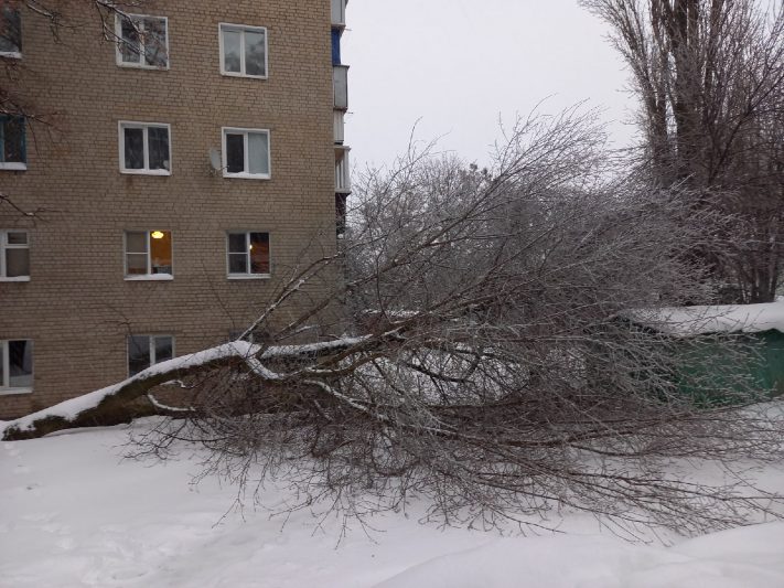 Из-за переменчивой погоды на деревьях образовался слой гололеда. Куряне сообщают о случаях, когда деревья не выдерживают тяжести и падают.