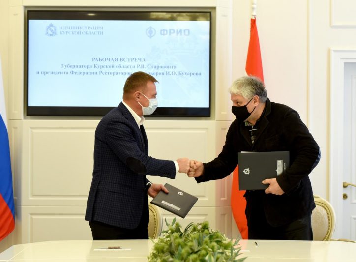 Соглашение о сотрудничестве подписали губернатор Курской области Роман Старовойт и президент Федерации Рестораторов и Отельеров России Игорь Бухаров.