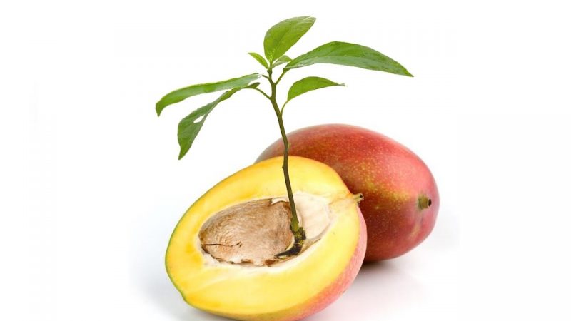 В плодах этого крупного индийского гостя прячутся огромные косточки. «Манго» даже переводится с санскрита как «великий фрукт». Семена извлекают из спелых плодов, раскрывают, достают сердцевину и проращивают в лёгком и рыхлом субстрате (подойдёт грунт для кактусов или суккулентов).