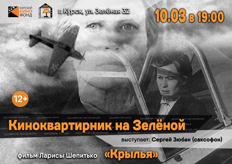 10 марта курян снова приглашают окунуться в романтичную атмосферу ретро-показа. На этот раз зрители увидят фильм Ларисы Шепитько «Крылья» (1966).