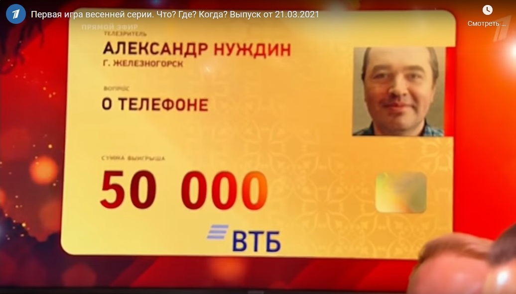 В первой игре весенней серии программы «Что? Где? Когда?» в эфире Первого канала житель Железногорска Курской области выиграл 50 тысяч рублей.