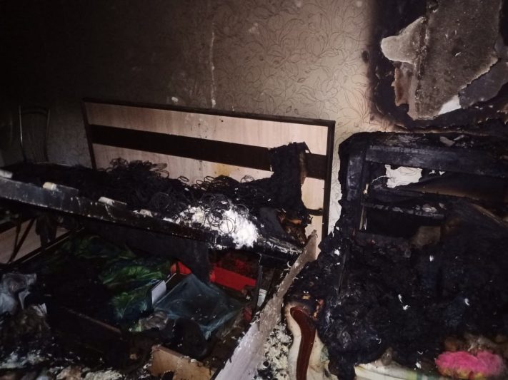 В результате пожара в 2-х комнатной квартире огонь повредил мебель и вещи б/у на площади 5 кв.м, закопчены стены и потолок по всей площади. В пресс-службе ГУ МЧС по Курской области сообщают, что в огне погиб 55-летний мужчина.