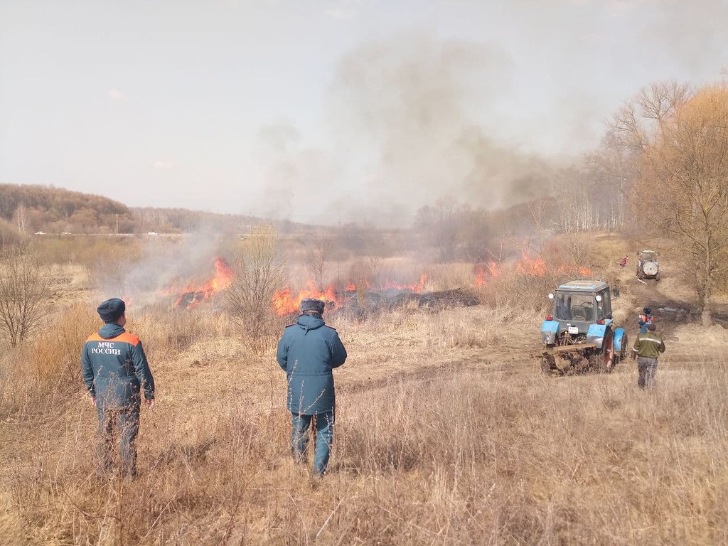 Чтобы предупредить масштабные пожары, решили сжигать сухую траву под контролем пожарных.