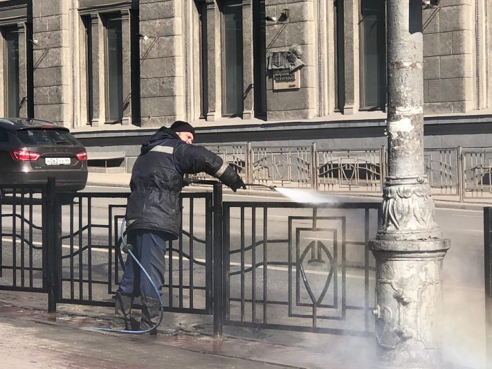Управляющие компании уже включились в работу: собирают и вывозят мусор, листву, опиливают сухие ветки и сносят аварийные деревья. Кроме того, с городских улиц убирают мусор и песок, моют ограждения. Торговые предприятия также приводят в порядок фасады торговых центров.
