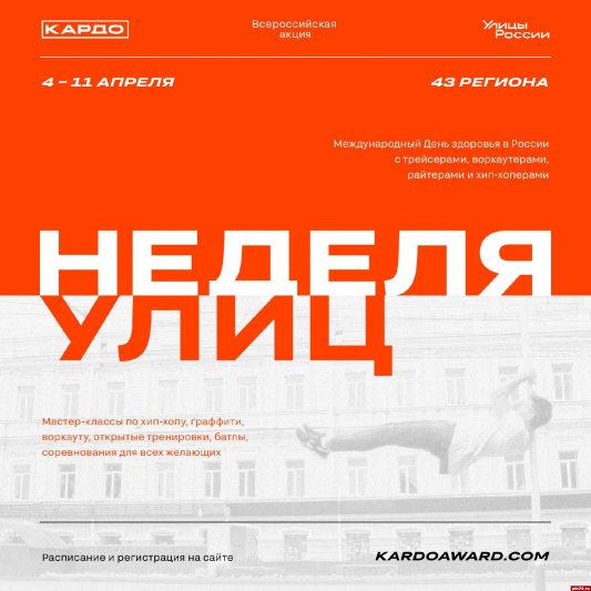 Мероприятие пройдет в рамках Всероссийской акции «Неделя улиц». Акция посвящена празднованию Всемирного дня здоровья, а инициаторы ее — Международная премия уличной культуры «КАРДО», рассказали в областном комитете молодежной политики.