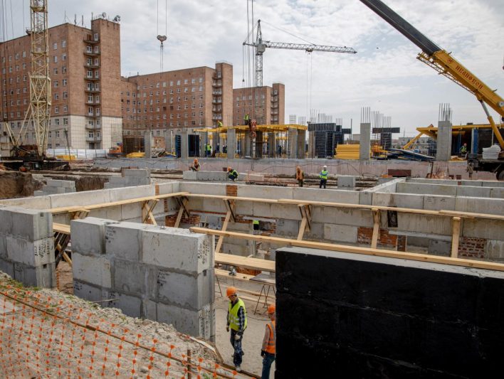 На текущий день завершено возведение фундаментальной плиты, подняты стены подполья. Сейчас идёт возведение перекрытий на первом этаже. На важнейшем объекте региона задействованы 126 человек, 14 из них – инженерно-технический персонал. Инфекционное отделение будет четырёхэтажным на 232 койки, из них 24 – реанимационные. Закупят медицинское оборудование на 600 миллионов рублей. После пандемии корпус перепрофилируют под хирургический.