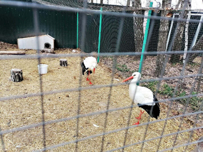 Похожая история у аиста. Его нашли в конце лета в лесу. Живой аист стоял возле мёртвого – птица много дней не ела. Пришлось насильно кормить рыбой. И выходили!
