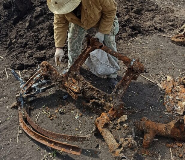 Поисковый отряд «Курган» произвел раскопки пикирующего бомбардировщика Пе-2 в районе поселка Садовый Советского района.