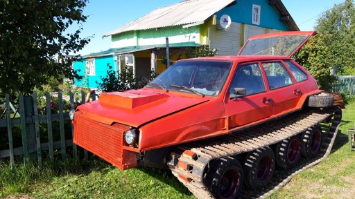 Как сообщает издание 29.ru, Владимир, владелец этого авто, нашёл кузов ВАЗ-2109 на свалке в хорошем состоянии. Вместо колёс приделал гусеницы шириной 48 сантиметров каждая, поставил дизельный двигатель от иномарки, запчасти заменил на новые. Кроме того, салон оборудован печками и вентиляторами.