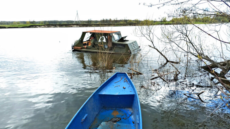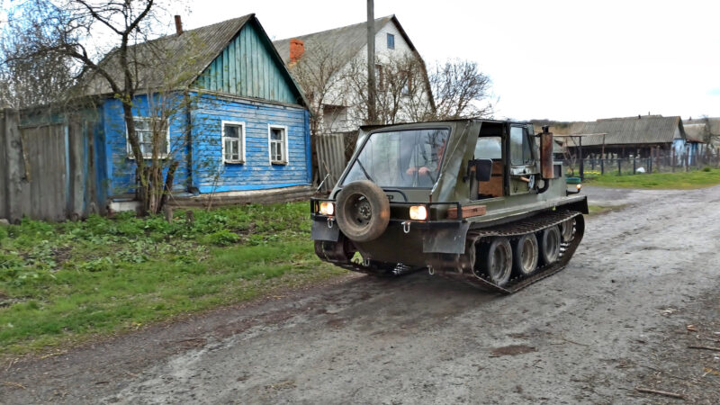 – Вездеход полностью герметичен, – рассказывает Сухоруков. – Уровень воды доходит до нижнего крыла. Когда первый раз проверяли его на плавучесть, я забыл, что у нас в речке есть ямка глубиной где-то три метра. Смотрю, вездеход закачался как лодка, но мы тогда не знали, что он поплывёт, испугались даже. Гусеницы вращаются, дна не видно. Тогда за рычагами племянник Женя был. Поворачивается ко мне, глаза испуганные, и говорит: «Что делать?» Но потихоньку выбрались.