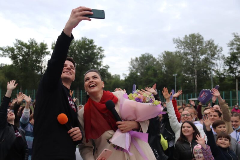 Школьники и активисты РДШ наперебой задавали вопросы: « Была ли у вас звёздная болезнь?» – «Пока нет. Но может быть, всё ещё впереди»; «Стали бы дружить со своим дублёром?» – «Да, это может быть интересно».
