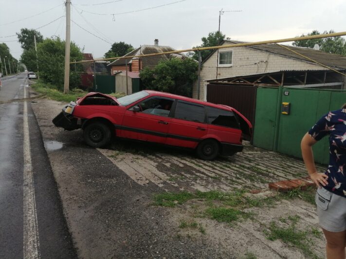 Еще одна авария с участием иномарки случилась в Льгове. «Volkswagen» от удара развернуло и вынесло на придомовую территорию частного дома.
