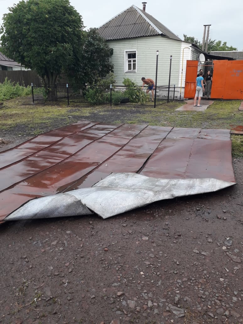 Ветер сорвал шифер и железную кровлю на здании Шерекинского СДК. Потоки воды хлынули в актовый зал и библиотеку.