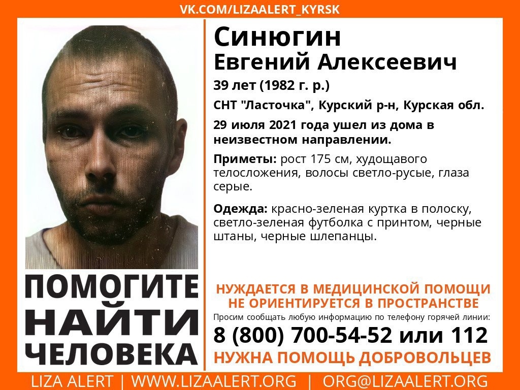 Как сообщает поисковый отряд “Лиза Алерт”, в Курской области пропал Синюгин Евгений Алексеевич.