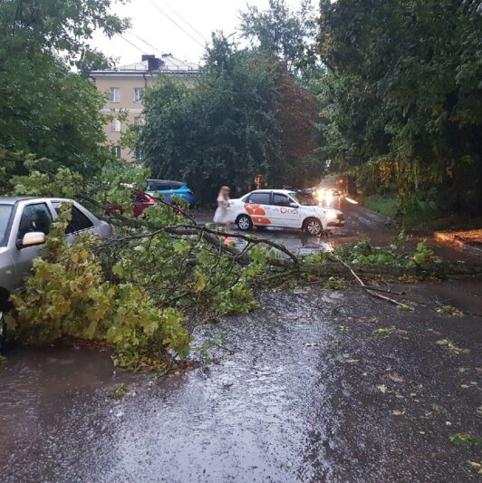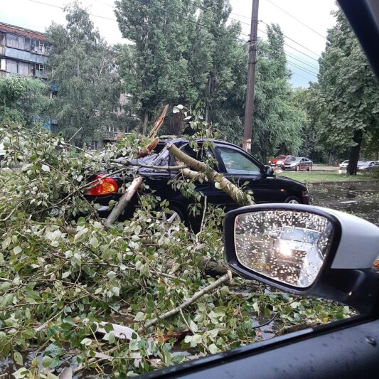 Очень много машин пострадало от упавших деревьев и конструкций.