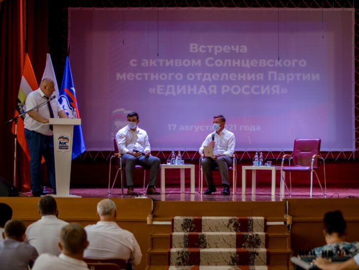 17 августа состоялась встреча секретаря Курского регионального отделения партии «Единая Россия», губернатора Курской области Романа Старовойта с партийным активом Солнцевского района.