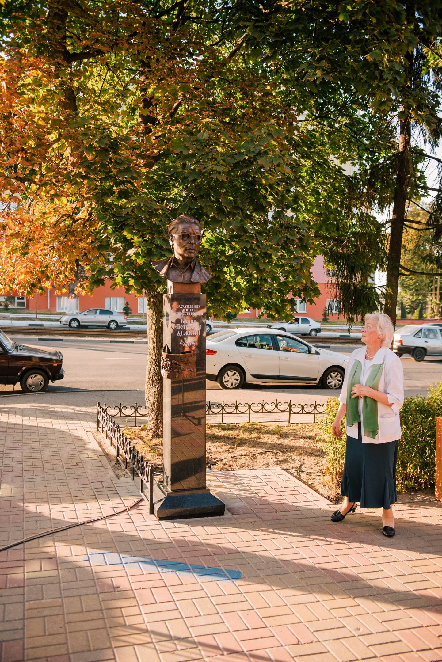 Вдова Ольга Гайдук на открытии бюста Бориса Дёжкина в Курске 27 августа 2018 года