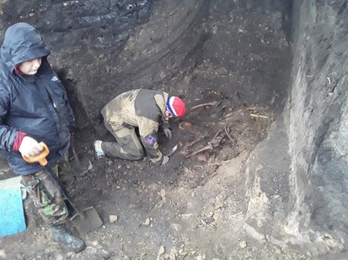 В ходе раскопок бойцами отрядов найдены 2 солдатских медальона и красноармейская книжка. Их передали на экспертизу, которая поможет установить имена солдат. Вместе с останками обнаружены гранаты и патроны. Это исключает версию расстрела пленных немцами. Наличие медальонов говорит о том, что бойцов погребла не похоронная команда, в таком случае медальоны были бы сняты. Основная версия: солдат захоронили после ожесточённых боёв. Поисковые работы здесь ещё продолжаются.