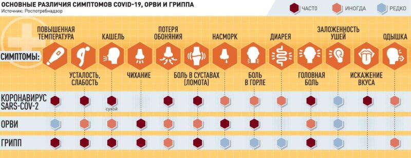 Основные различия симптомов COVID-19, ОРВИ и гриппа. Фото: Роспотребнадзор