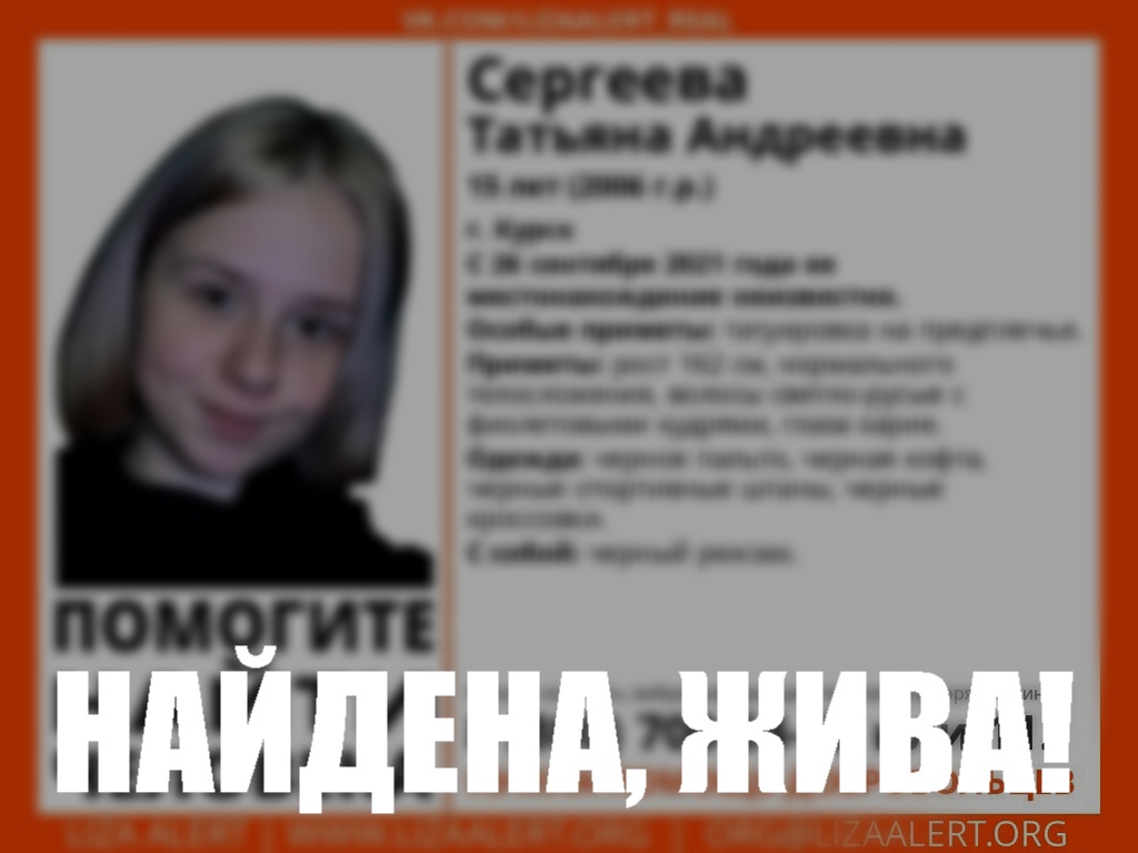 26 сентября в Курске пропала 15-летняя Татьяна Сергеева.