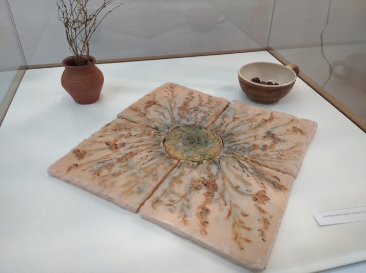 В экспозиции — изделия курской мастерицы Татьяны Звягинцевой — здесь и коробчатые изразцы, и легкая плитка.