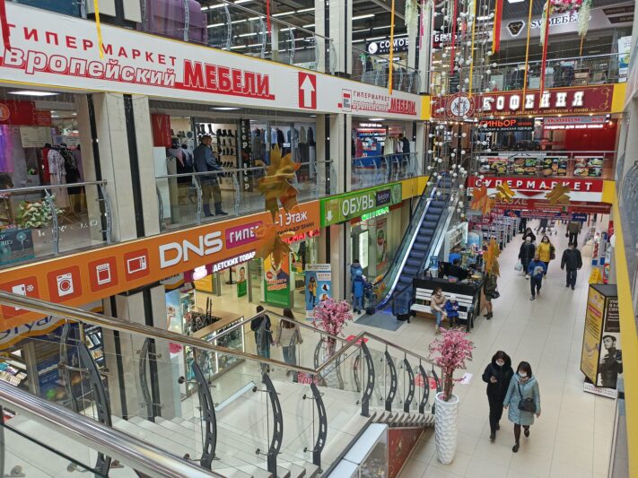 Но так происходит не везде. В «ГРИННе» напротив Центрального рынка вечером во вторник на входе охраны не наблюдалось. Здесь на втором этаже расположен крупный обувной магазин. Ни на входе, ни при покупке QR-код никто не спросил. Этажом выше размещается большой магазин дешёвой одежды. Ситуация аналогичная: заходи, покупай, плати. Никаких «скучных формальностей»!