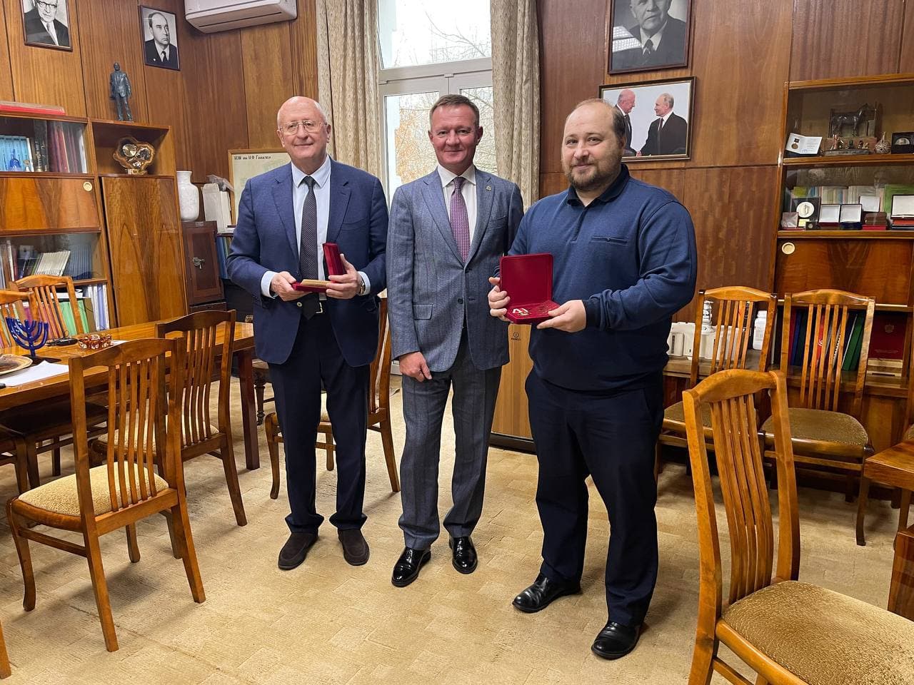 Роман Старовойт также отметил вклад одного из разработчиков «Спутника V» Дениса Логунова – выпускника курского вуза. Губернатор вручил медаль имени Короткова.