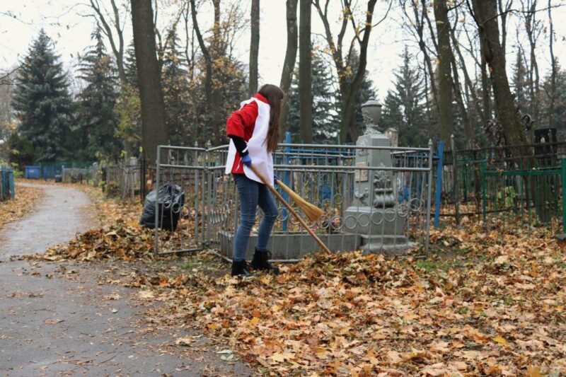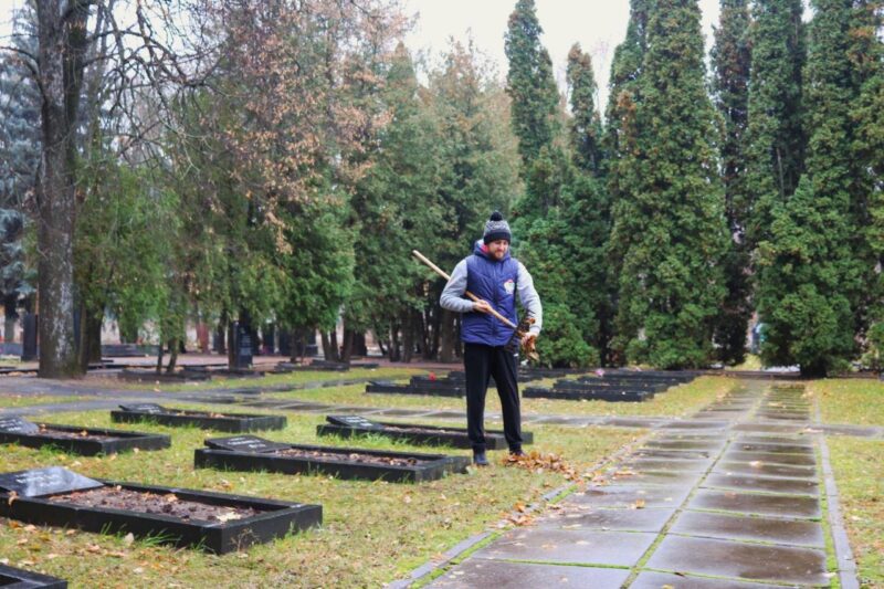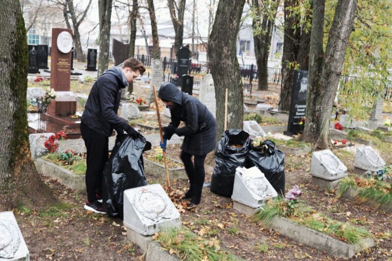 Волонтеры добровольческого корпуса Центра поддержки молодежных инициатив города Курска, студенты средних профессиональных учебных заведений города Курска привели в порядок захоронения курских ополченцев и прилегающую территорию Никитского кладбища.