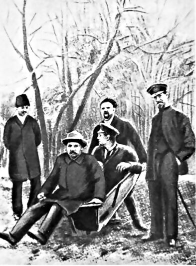 Гиляровский катает в тачке Антона и Михаила Чеховых