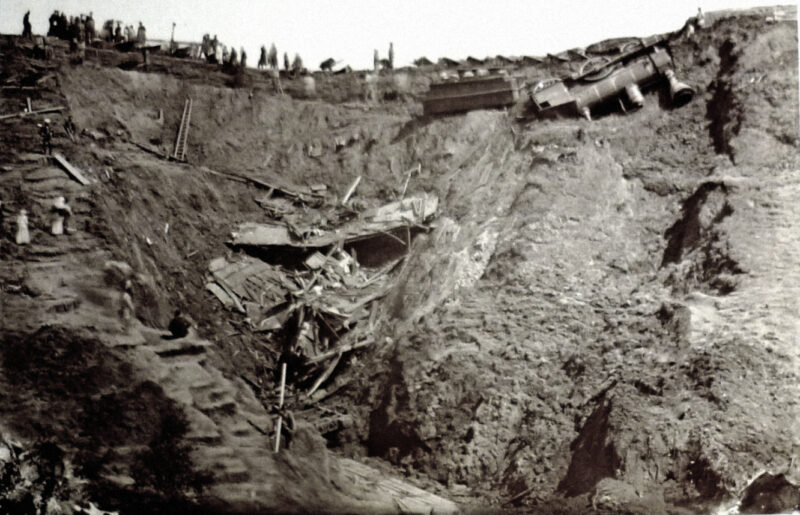 Десять вагонов с пассажирами разбились вдребезги, четыре вагона, в том числе и почтовый, оторвались и уцелели. Страшное зрелище представляли эти обломки поезда и массы убитых и тяжело израненных! Поездная прислуга убита почти вся. По первому исчислению, более 50 пассажиров убиты и до 80 человек искалечены так ужасно, что многие едва ли останутся в живых.