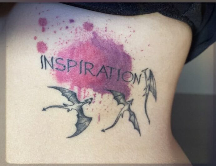 – Эмоции, которые я испытала, вряд ли можно с чем-то сравнить. Это был огромный всплеск эмоций, поток какого-то «космического» счастья. Татуировка характеризует меня и мой внутренний мир. Английское слово «Inspiration» – вдохновение, желание радоваться каждому дню и никогда не забывать о впечатлениях, о своей душе. Цвет – это краски, яркость жизни. Драконы – мой внутренний мир, фантазийный, немного глупый, но очень обширный и богатый воображением, место, где мне всегда комфортно, – объясняет Дарья.